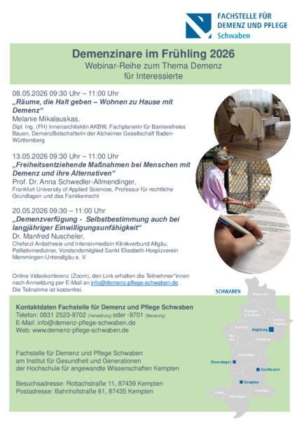 | Veranstalter | Fachstelle für Demenz und Pflege Schwaben |